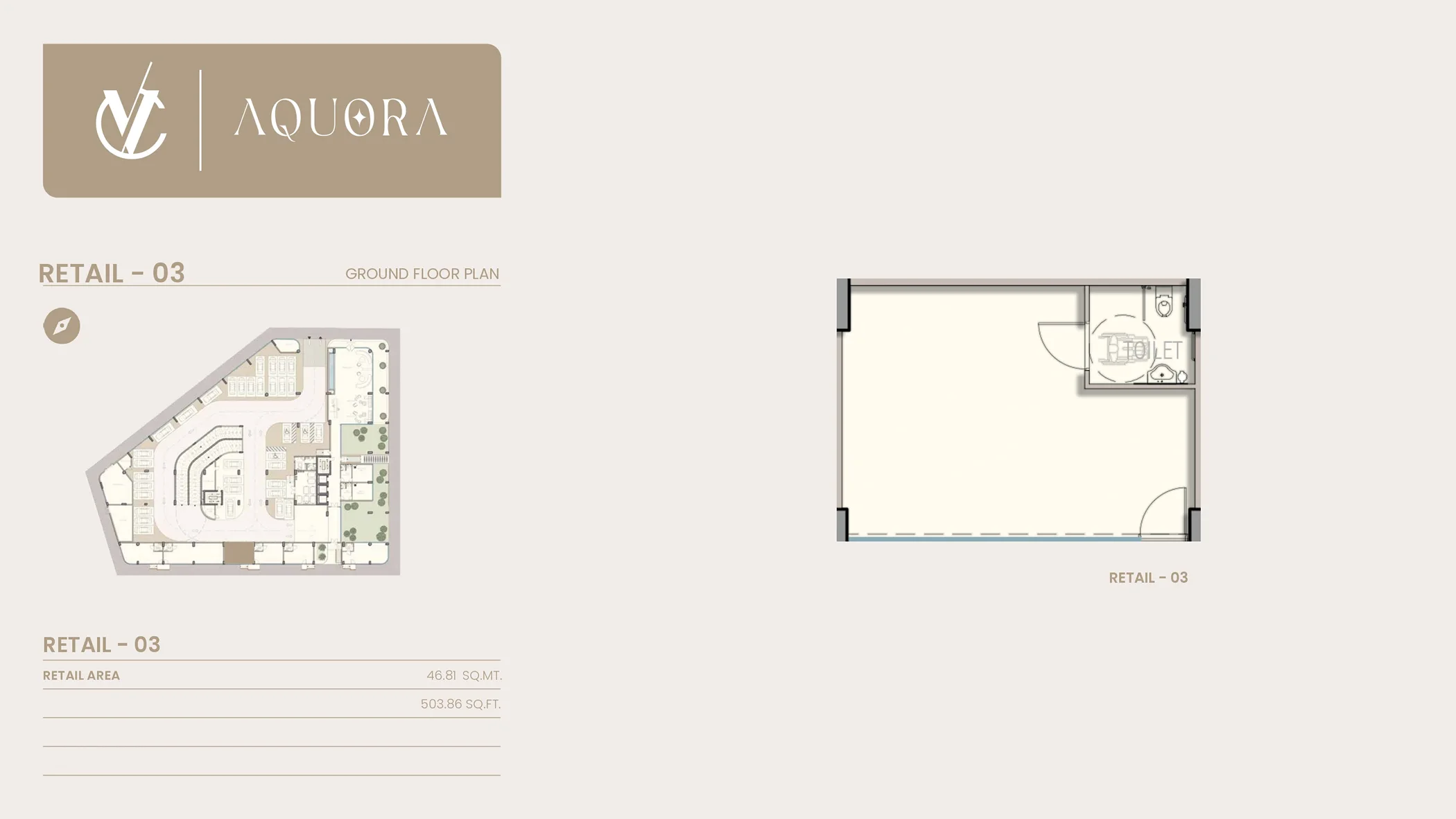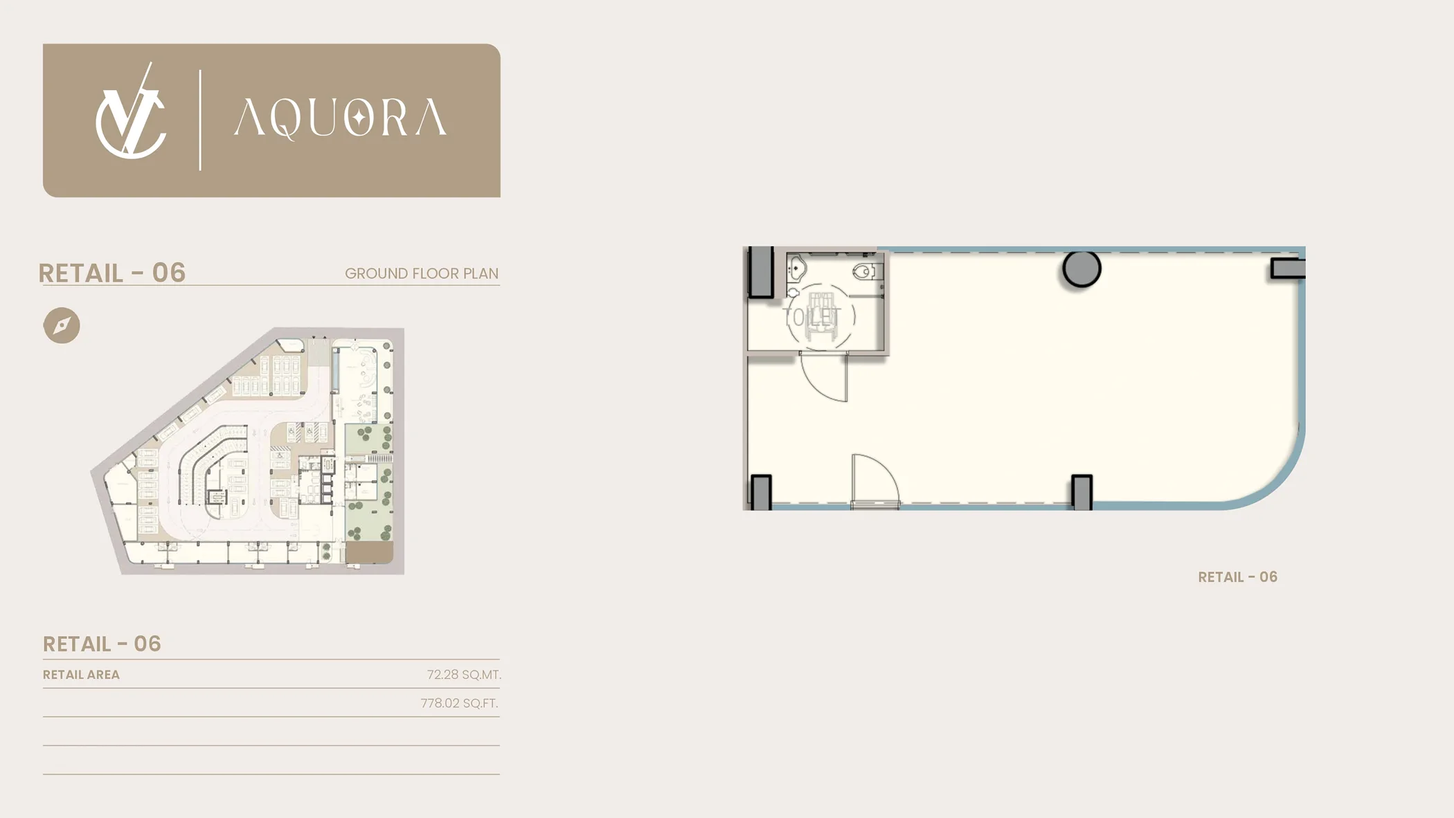 All retail units are delivered with open-plan internal layouts, enabling tenants or investors to adapt the space to their operational requirements. Each unit includes a dedicated toilet, clear frontage along the promenade, and direct access from public circulation areas. Column positioning and internal geometry support efficient space planning and merchandising layouts, while select corner units benefit from enhanced visibility and curved façades aligned with the architectural language of the building.