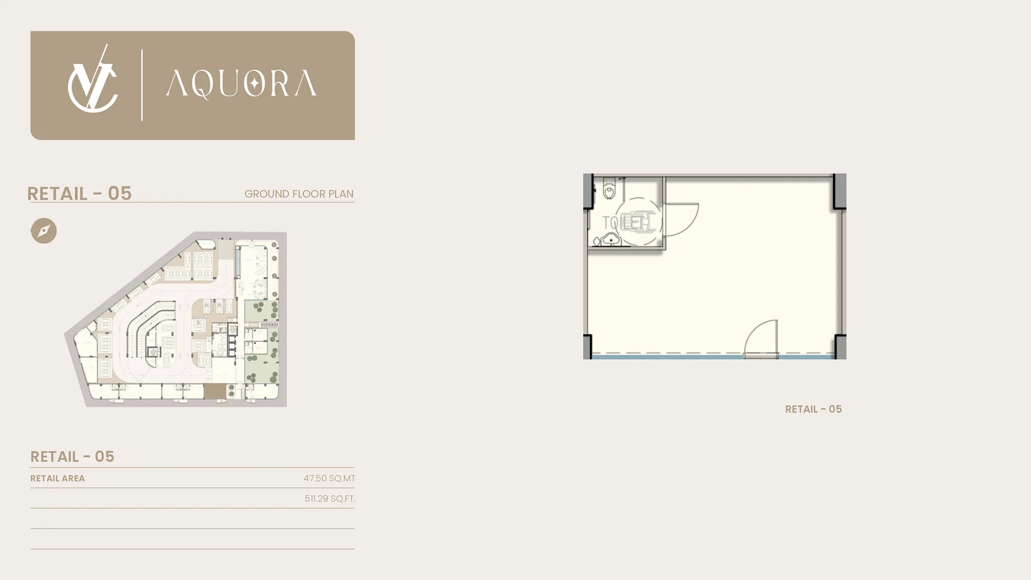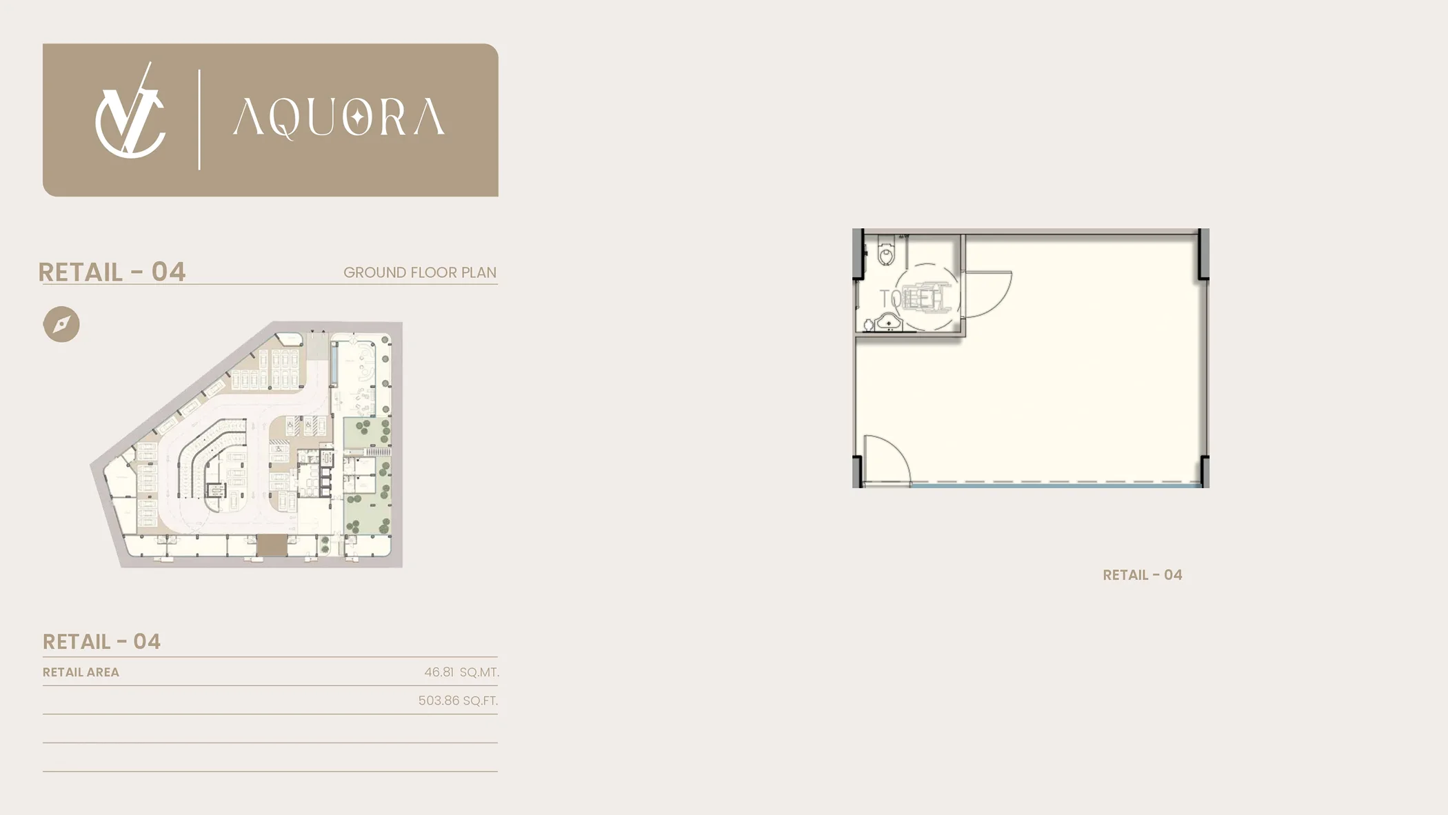 Aquora includes a limited collection of six commercial retail units located on the ground floor, directly fronting the waterfront promenade. These units are conceived as street-level retail spaces designed to complement the residential environment while benefiting from high pedestrian visibility and direct public access.