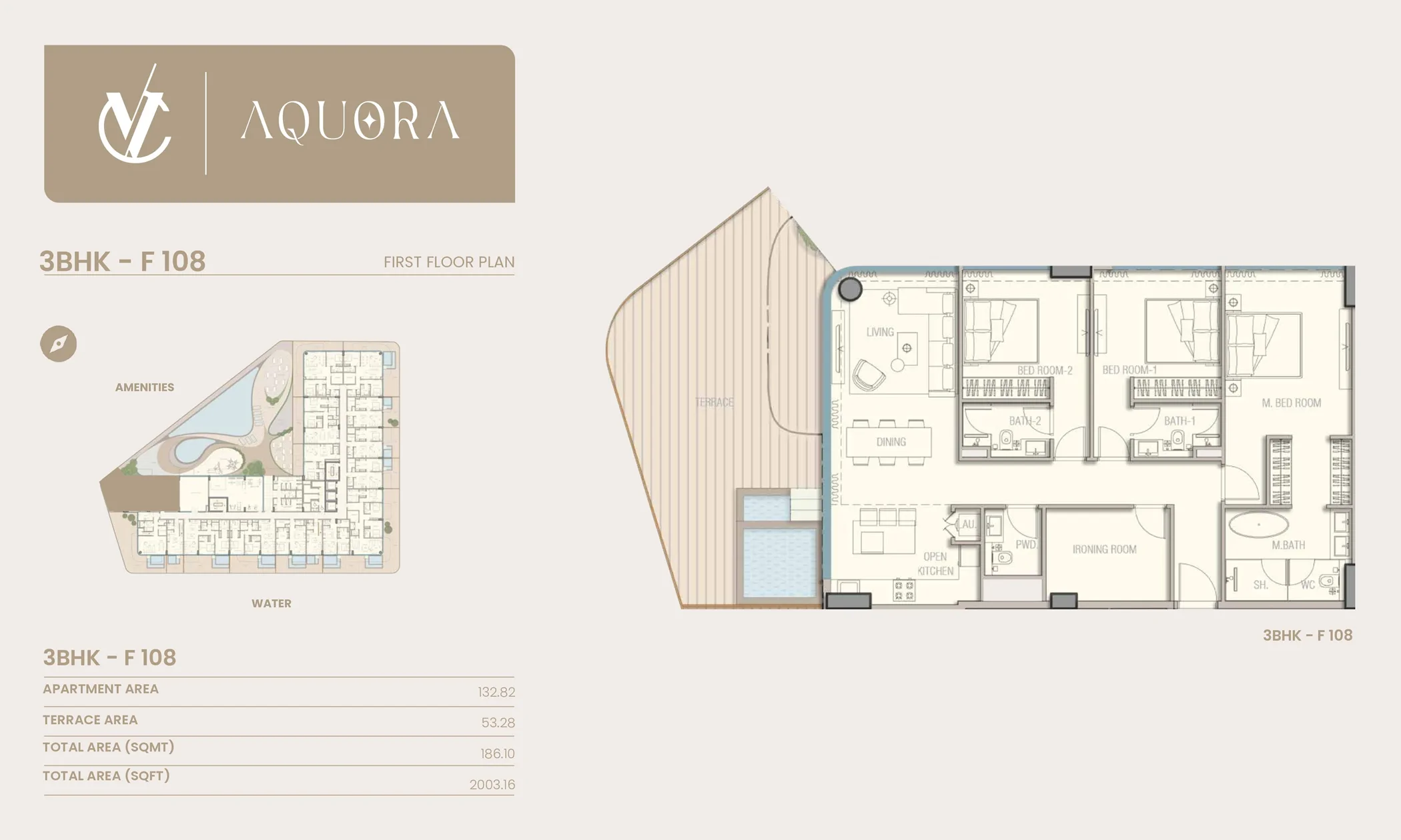 Interiors at Aquora are specified using internationally recognised brands. The project features Minotti and Terzani design elements, Technogym fitness equipment, Teka kitchen appliances, Gessi sanitary fittings, Ergon surfaces, and Fondovalle porcelain finishes. This curated selection of brands defines the interior character of Aquora, combining refined aesthetics with durability and long-term residential value.