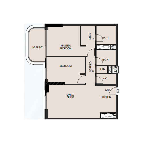 Edgewater Residences includes 1-, 2-, and 3-bedroom apartments with practical, well-balanced layouts. All units feature open living areas with balcony access, separate bedroom zones, and built-in storage. Corner apartments benefit from dual-aspect glazing and larger terraces.