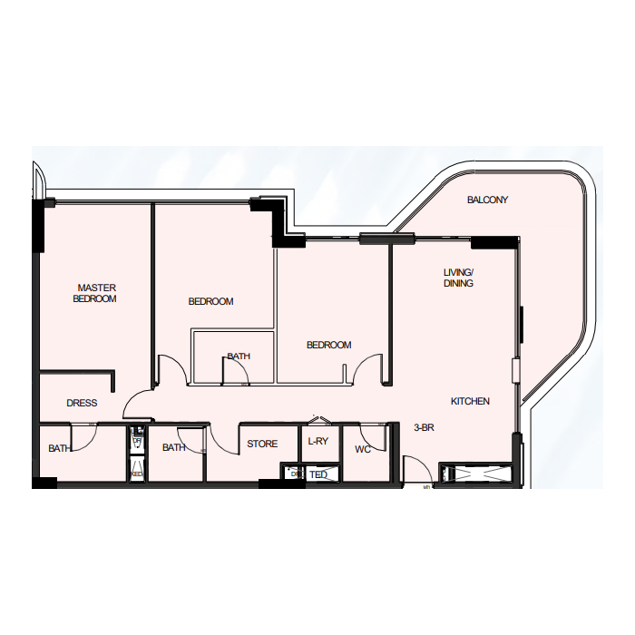 Edgewater Residences includes 1-, 2-, and 3-bedroom apartments with practical, well-balanced layouts. All units feature open living areas with balcony access, separate bedroom zones, and built-in storage. Corner apartments benefit from dual-aspect glazing and larger terraces.