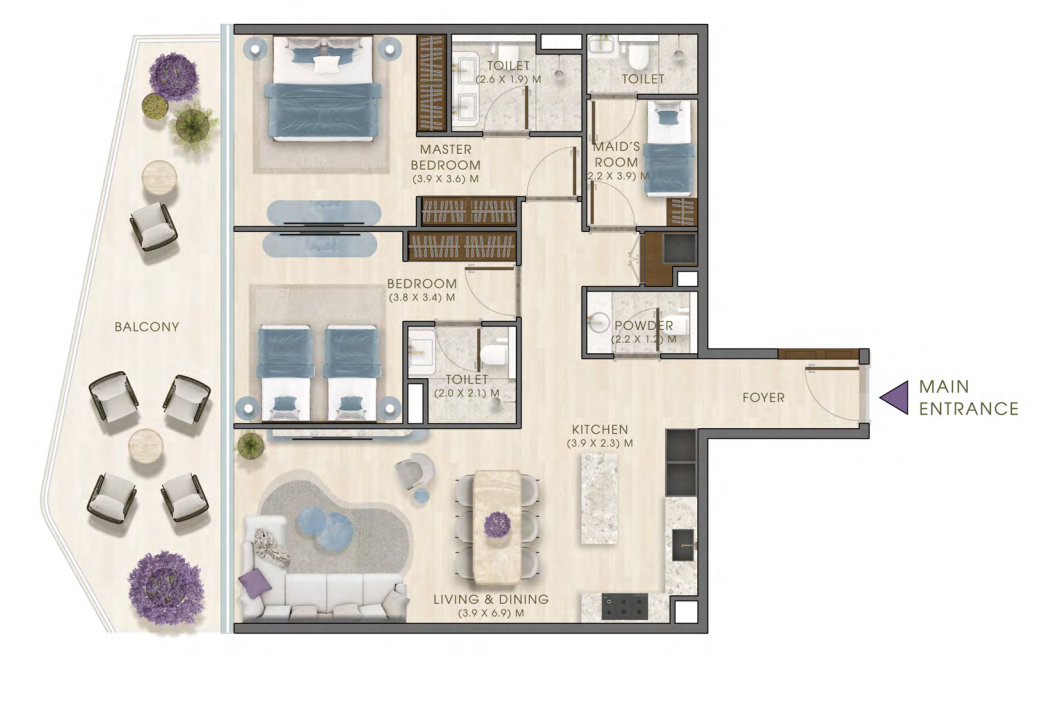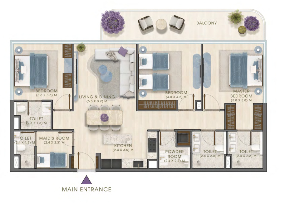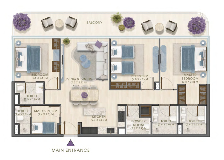 3 BHK Apartments + Maid’s Room