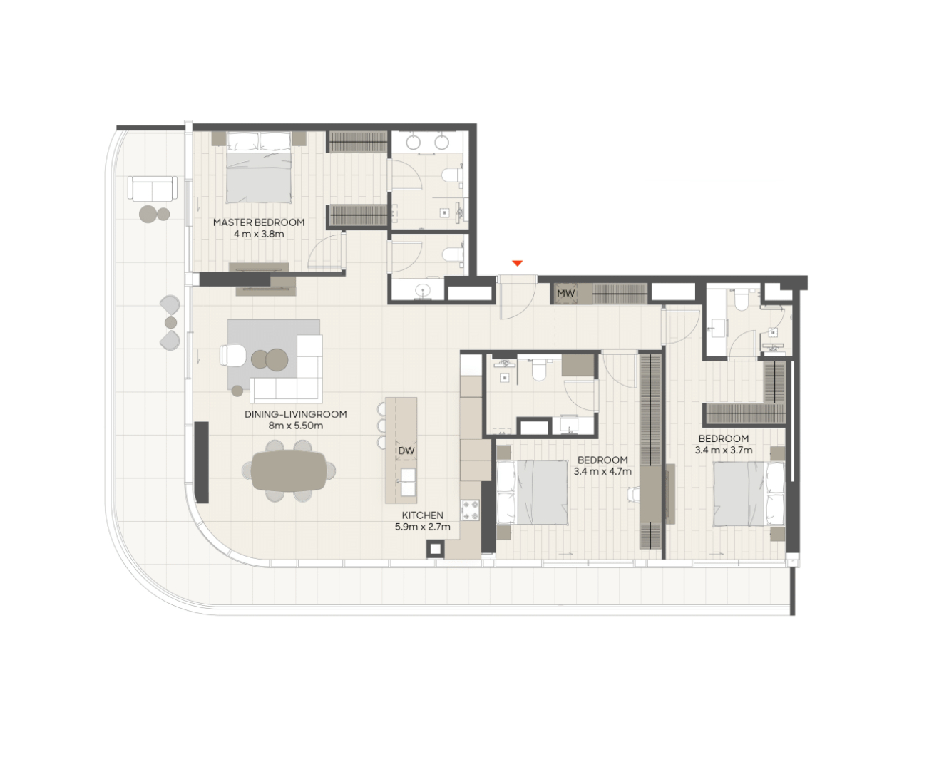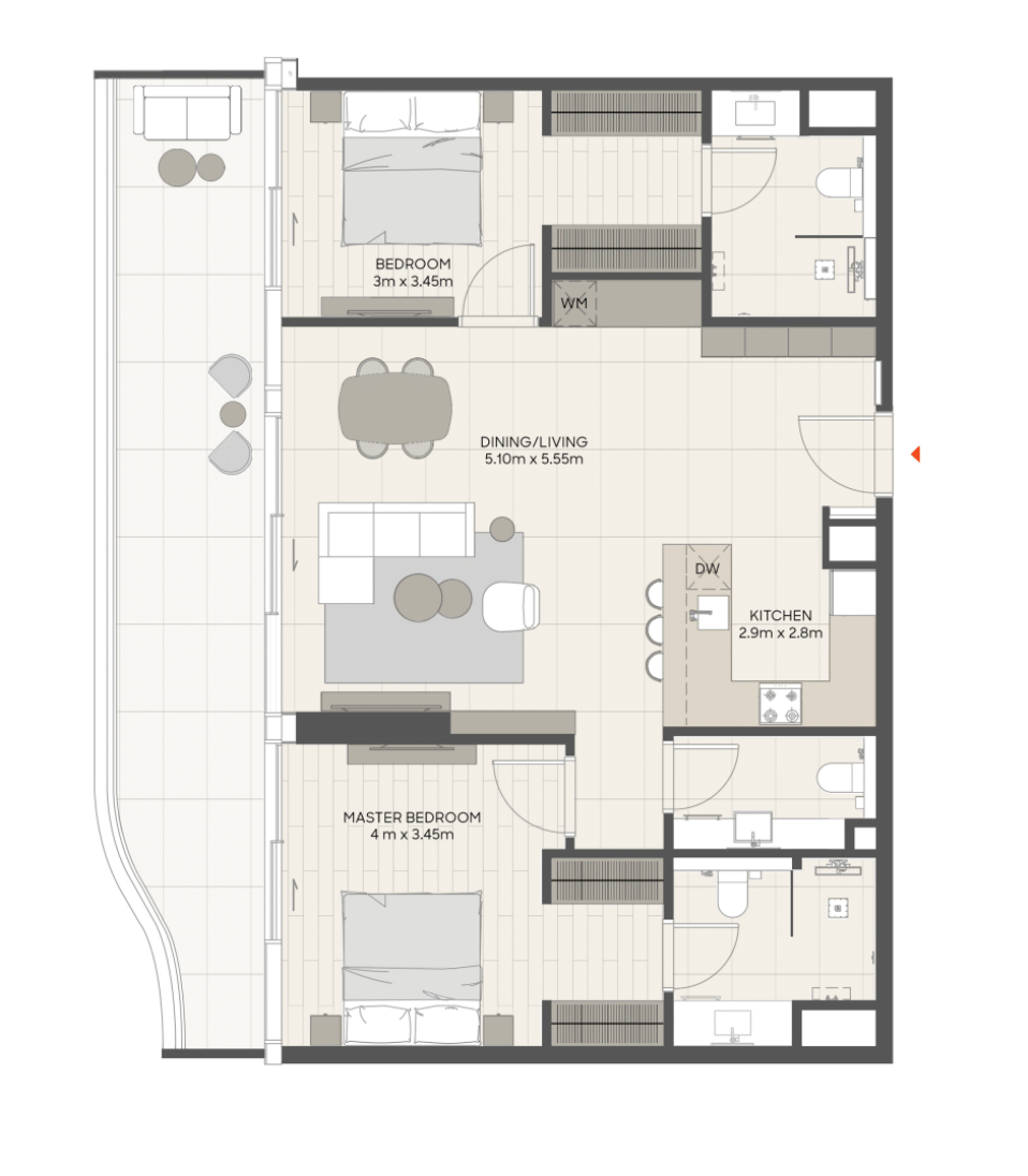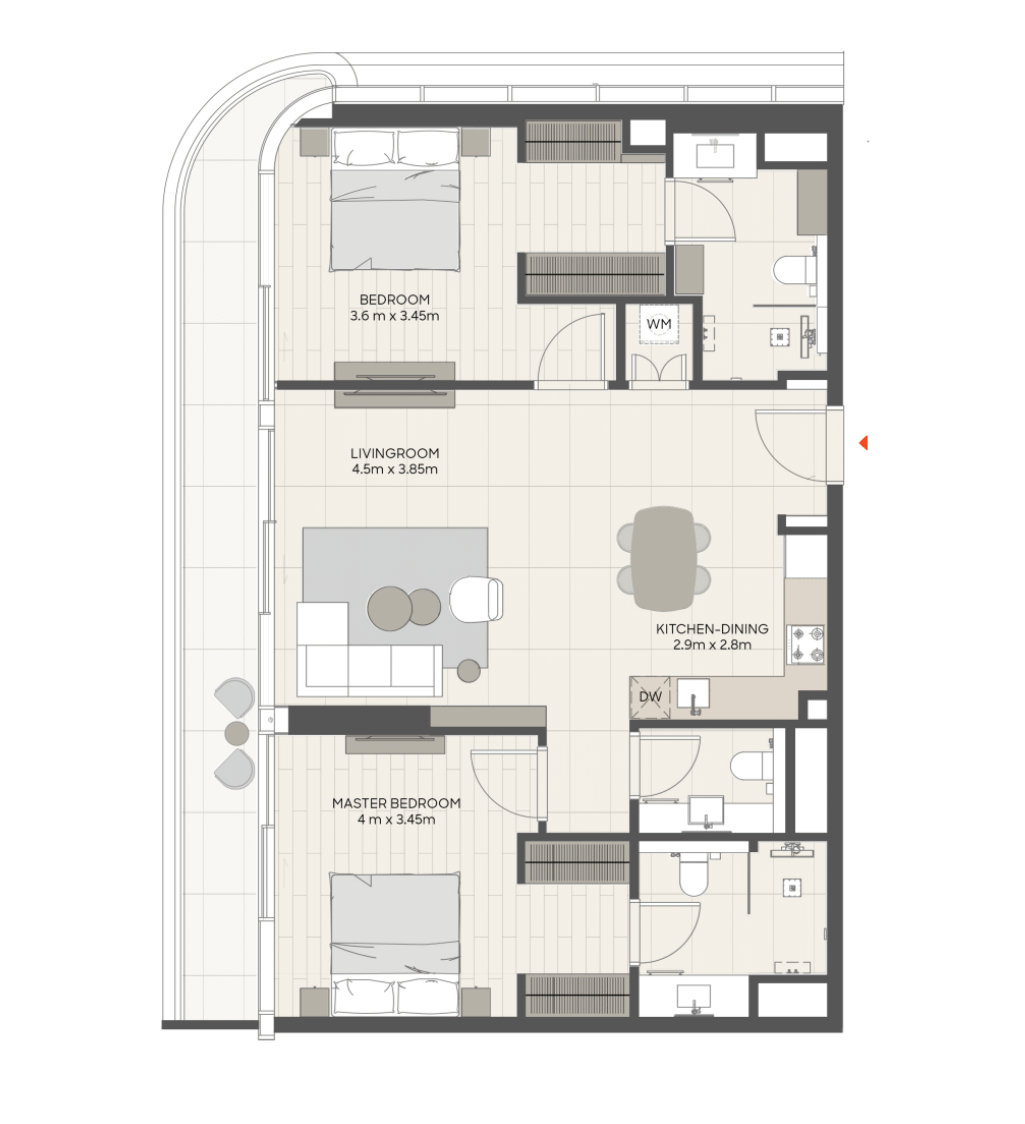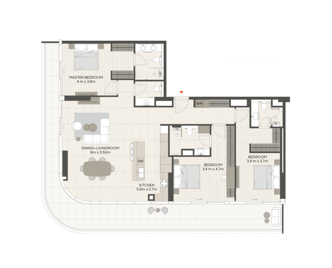 LIV Oceanside features a curated collection of 106 premium residences, including 1–3 bedroom apartments, 4-bedroom penthouses, and 2–4 bedroom duplexes with private pools. Layouts are designed to maximize waterfront exposure, with all units offering panoramic sea, beach, marina, sunset, or skyline views.
