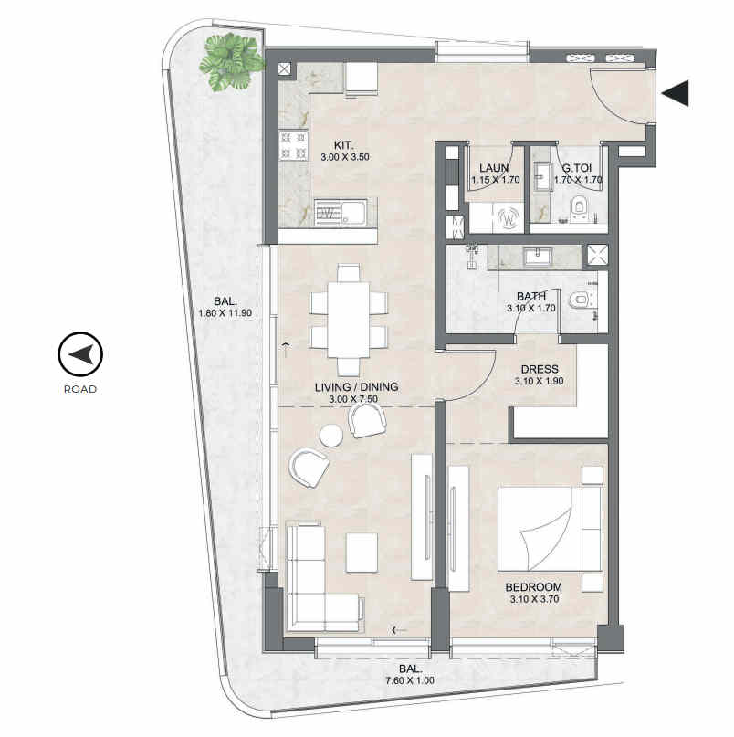 1-Bedroom Apartments Type D