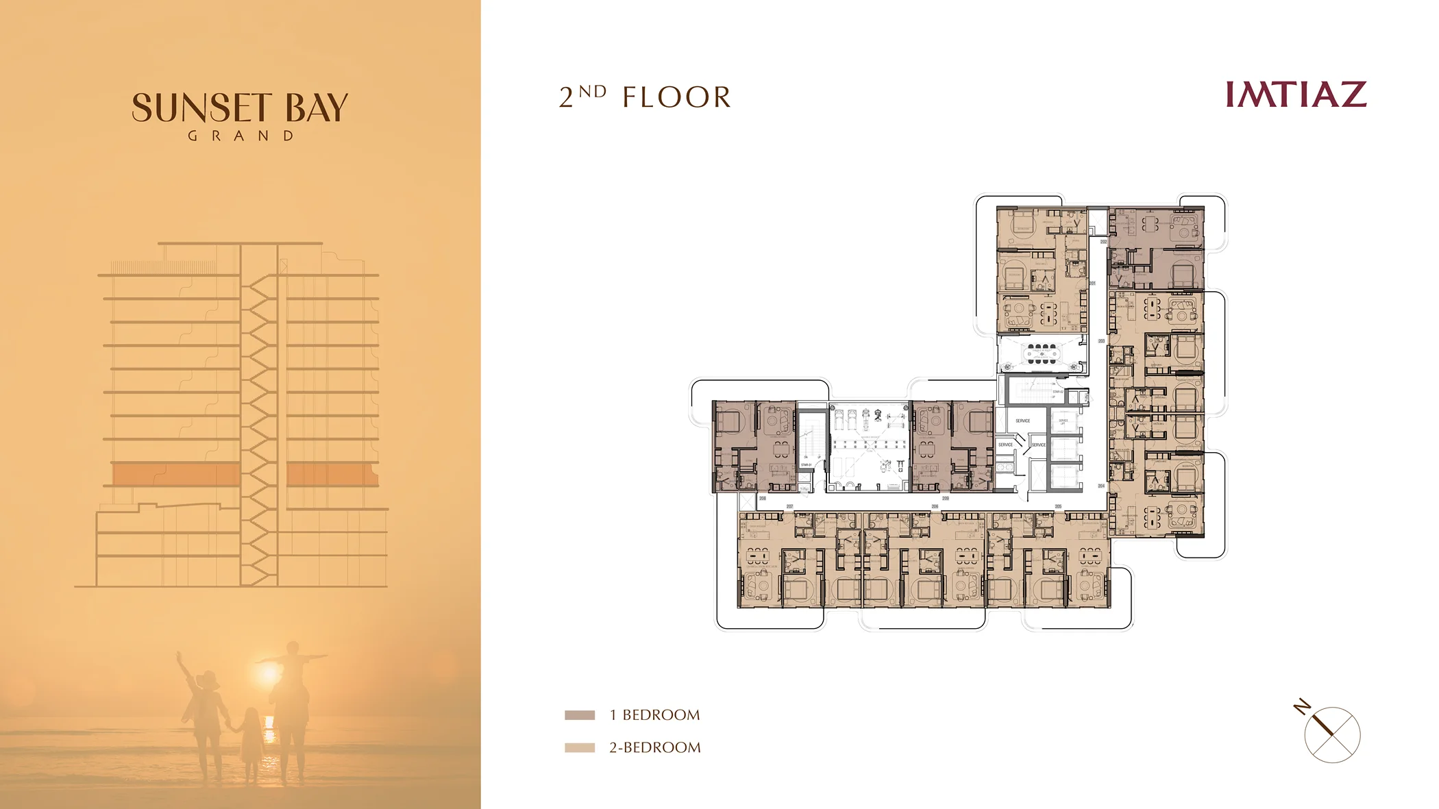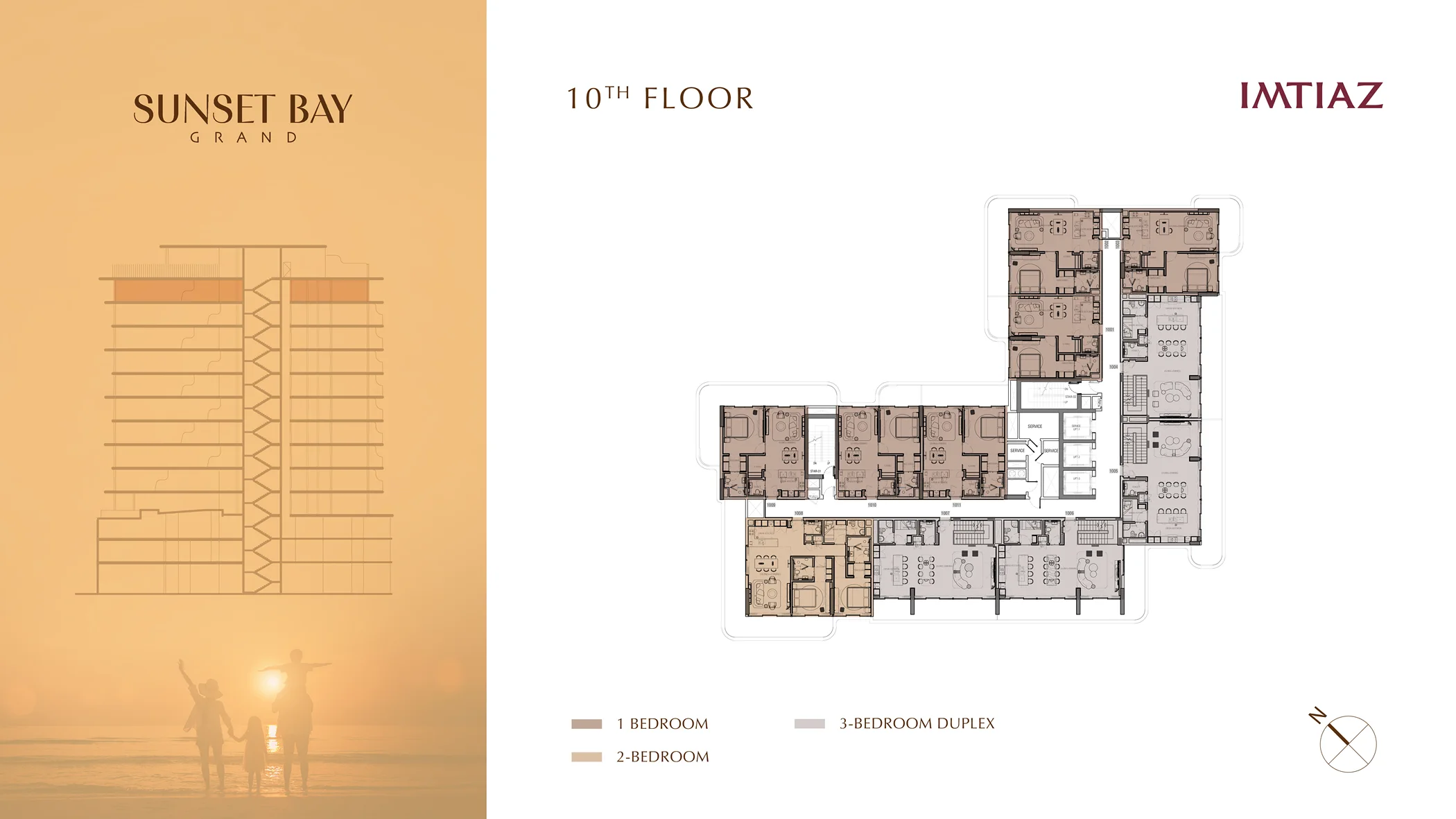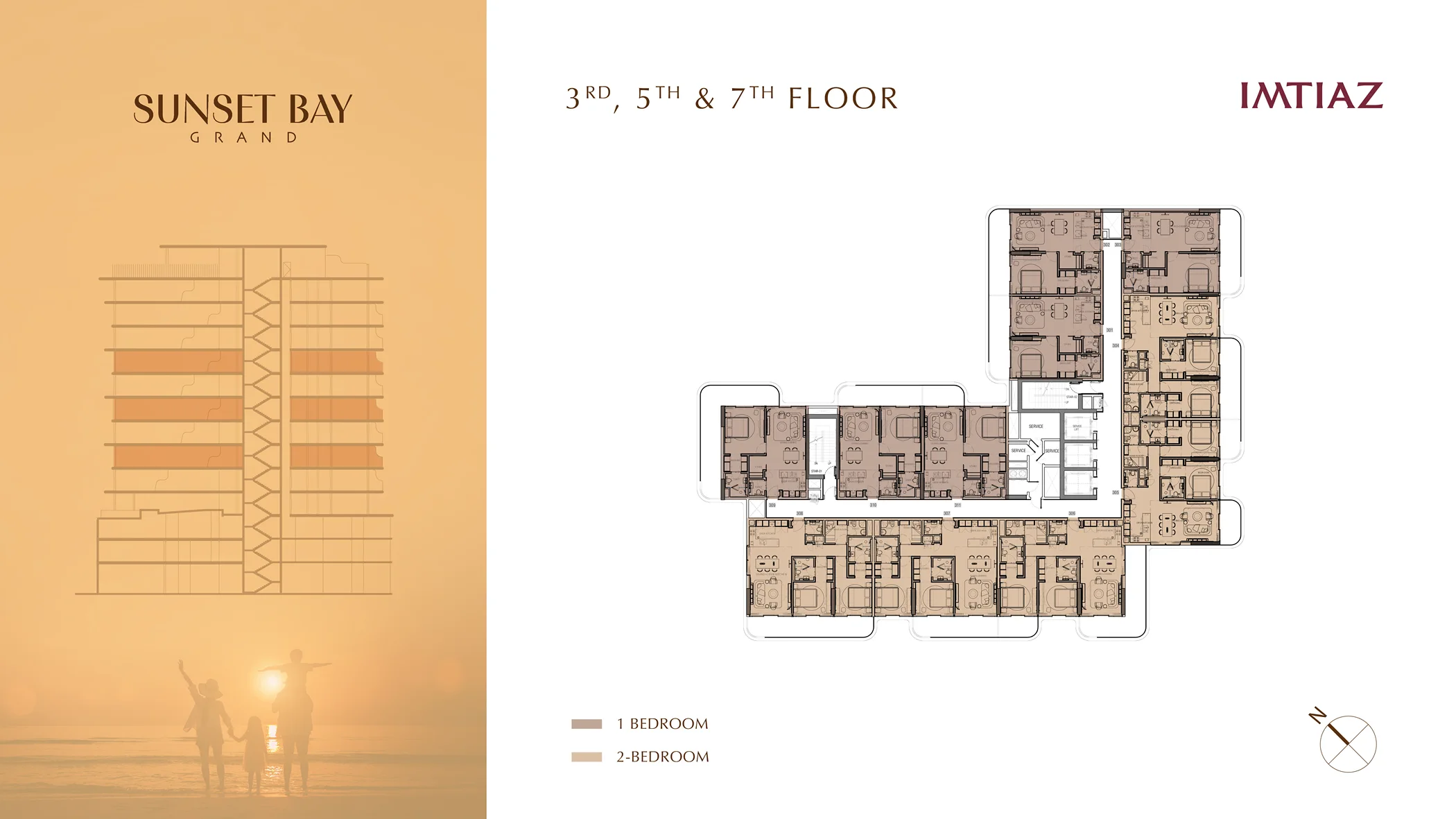 Sunset Bay Grand от Imtiaz Developments — это среднеэтажный жилой комплекс с двумя уровнями подиума и десятью жилыми этажами, включающий 98 полностью меблированных апартаментов. Проект выполнен в курортном стиле и предлагает апартаменты с одной, двумя и тремя спальнями, панорамными видами на море, индивидуальными интерьерами и современными системами «умный дом».