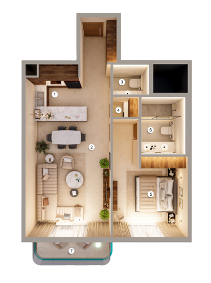 Residences are delivered with luxury furnishings and branded appliances as standard. Frameless designer doors, premium finishes, and integrated smart home systems reinforce the project’s emphasis on design quality, usability, and long-term value.