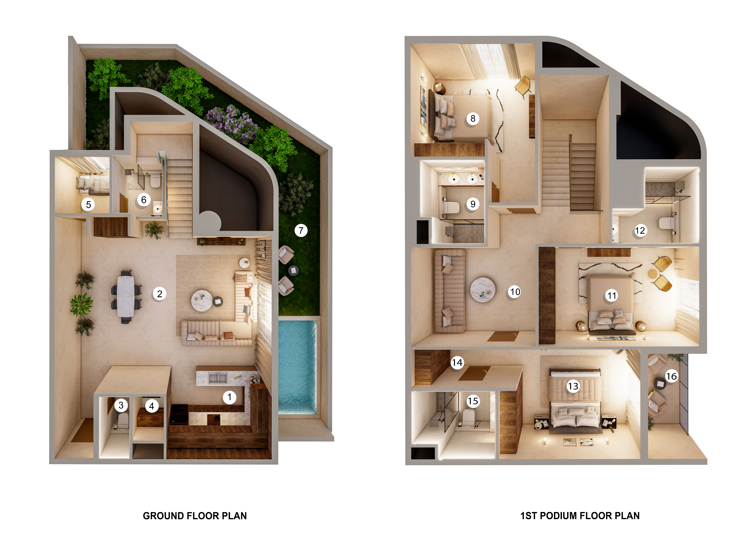 The development features a refined collection of 1-bedroom apartments, 2-bedroom apartments, and 3-bedroom duplex residences with private pools and gardens, designed to balance everyday functionality with elevated living standards. All residences at Ventone are equipped with a fully integrated Alexa Smart Home System, enabling residents to control lighting, climate, and daily home functions through intuitive digital interfaces.